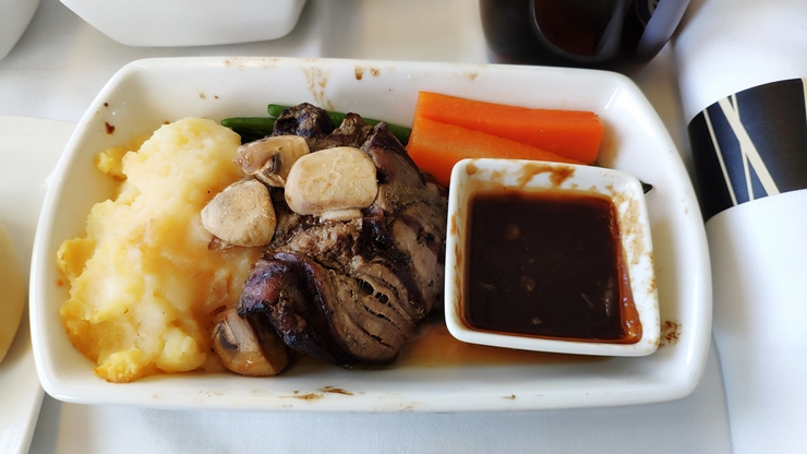 불과 1시간 40분 비행하는 비행기에서 스테이크를??? 하지만 정말 스테이크였고 맛도 괜찮은 편이었으나 홍콩 라운지에서 먹었던 후유증 때문에 힘들게 힘들게 먹었습니다. 날 위해 희생한 소를 생각하니 남길 수는 없더라고요.