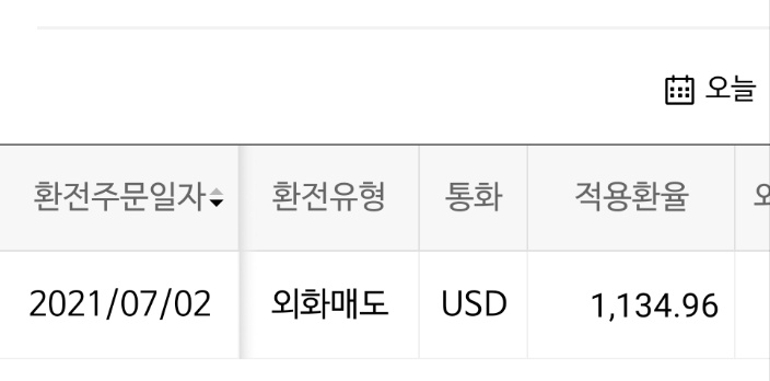 1주일전인 6월 25일에 샀던 달러를 오늘 팔아서 수익 실현을 했습니다.