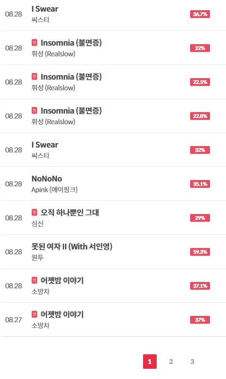 에이핑크의 명곡인 노노노 같은 경우 싼값에 산 곡들을 팔고 추가로 비싼 가격에 산 곡들을 팔고 있음에도 수익율이 계속 올라가기만 합니다. 지금까지 가지고 있다가 정리했다면 더 많은 수익을 올렸겠죠. 하지만 수익을 못보고 손해 본것도 아니고 수익율이 최고가 아니라는건데 저로서는 이 정도면 충분히 만족합니다.